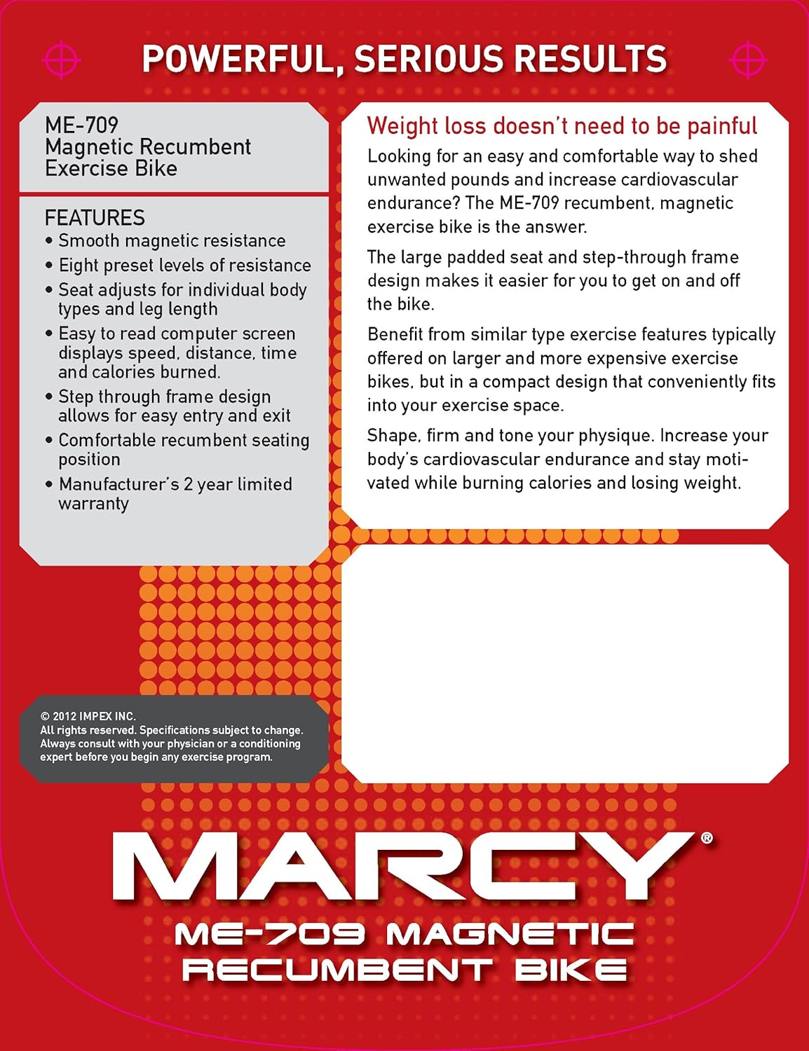 If you want to work the larger muscles in your body and enjoy a comprehensive cardio workout from the comfort of home, thinks seriously about investing in Marcy’s magnificent recumbent bike.